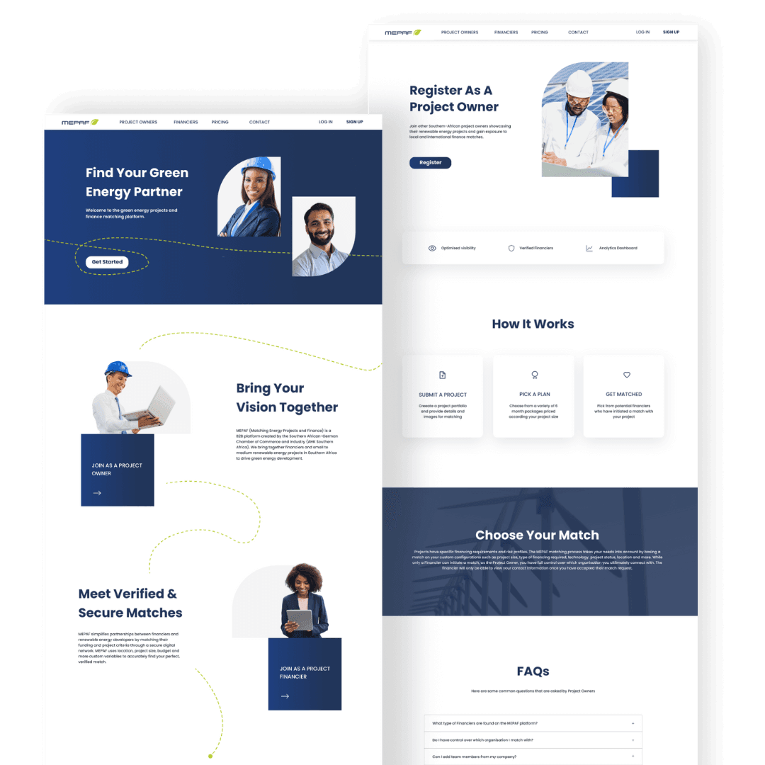 We won a bid to design and develop a Green Fund match-making web app on behalf of the South African German Chamber of Commerce. The project goal was to increase renewable energy partnerships between Project Owners and Financiers in southern Africa. Our brief included Project Management, UX Design, UI Design, and Prototyping.