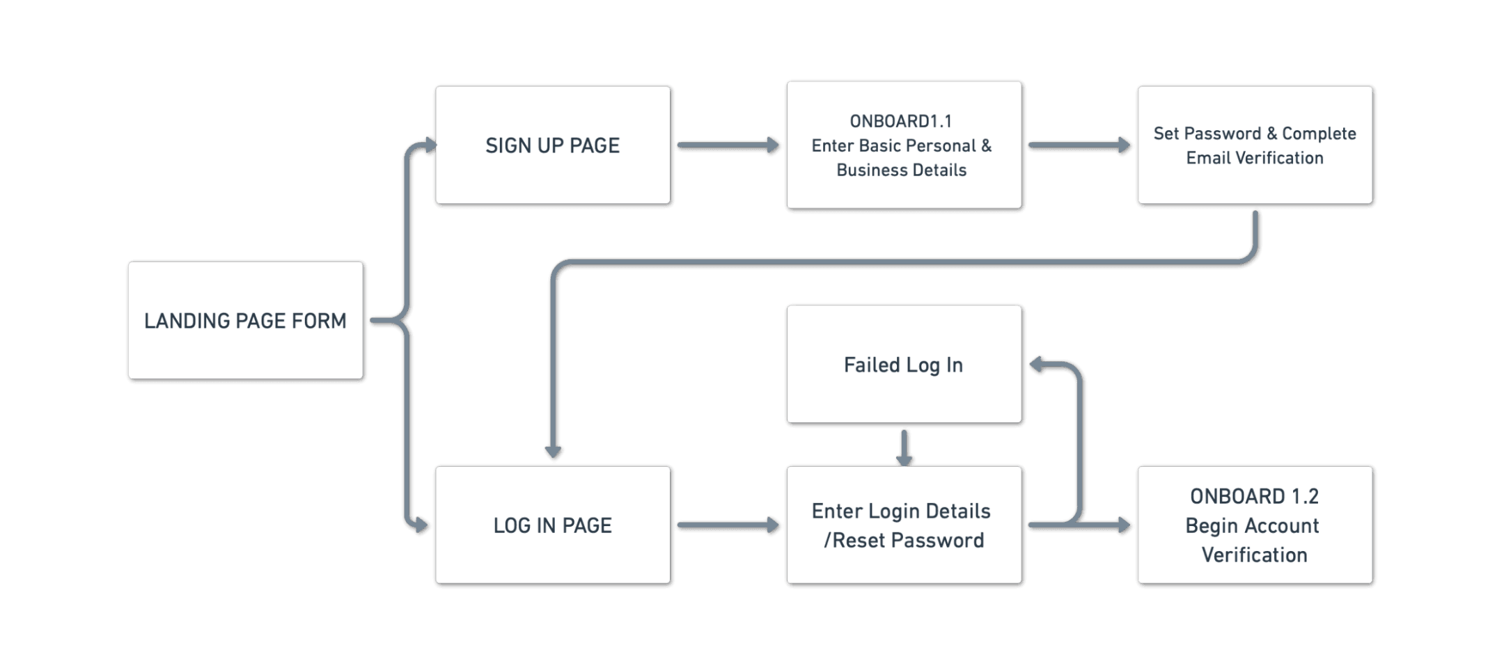 By distributing groups of data from the onboarding flow across to the registration, personal profile and business profile data input flows, I managed to segment the verification process into bites sizes. This allowed users to feel like they accomplished tasks faster and were able to move on to searching for a business match quicker.